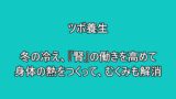 東洋医学で「カラダの熱をつくる」のは生殖、成長、老化をコントロールしている「腎(じん)」の働きであると考えられています「腎」の働きには、現代医学的な腎臓の「血液を濾過して老廃物を尿として排出する」機能も含まれます。「腎」の働き、つまり腎臓の機能が低下すると余分な水分が体内にたまり、むくみの原因となります。冬の冷えとむくみ対策には、「腎」の働きを高める「太渓」のツボを押しましょう。